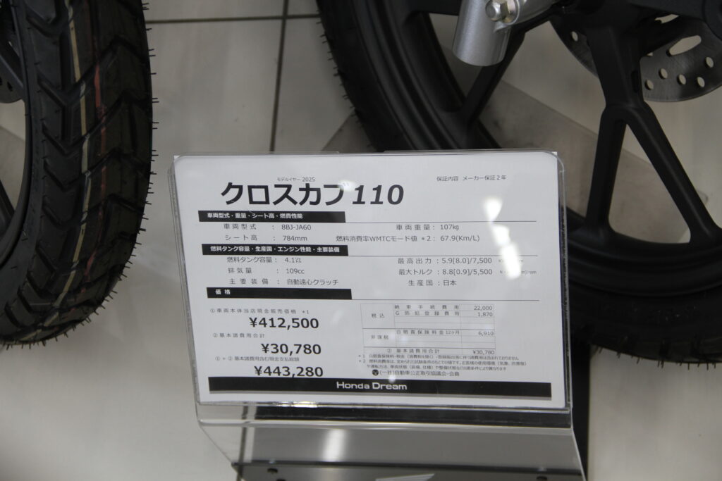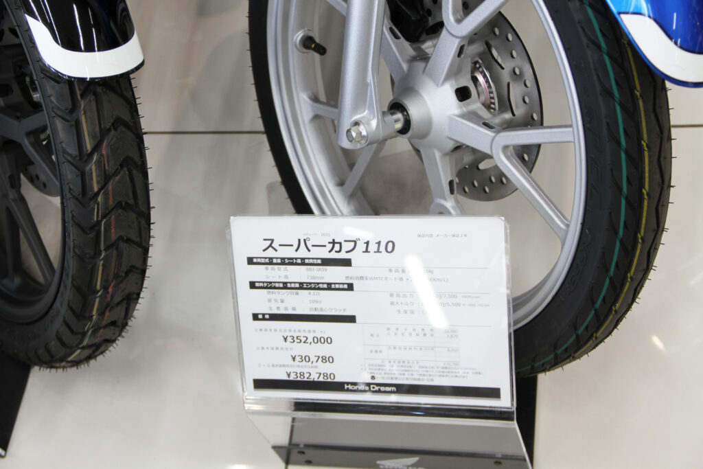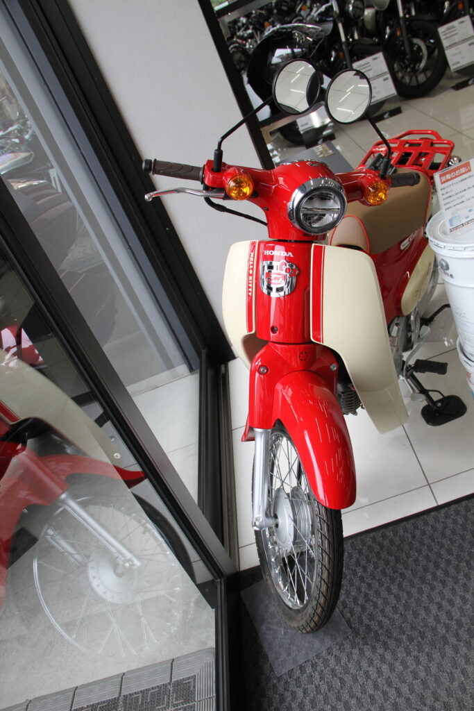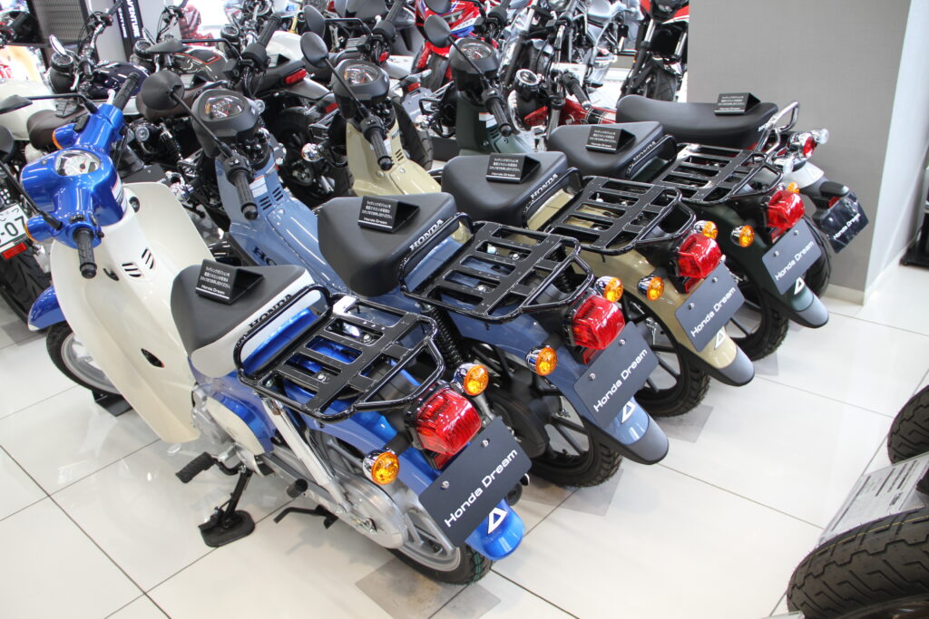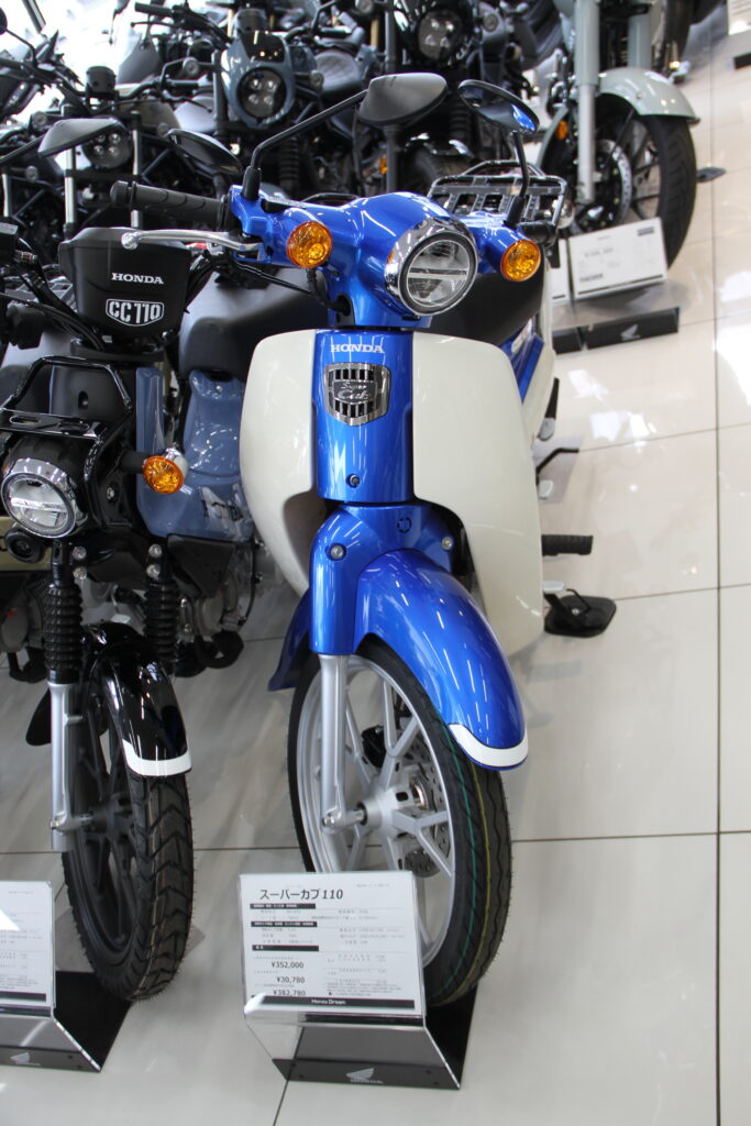 今回スーパーカブ110Liteシリーズ(新基準原付に適合する110cc)はなかったのですが、変わらない名作、スーパーカブ110はしっかりと店頭に並んでいました。