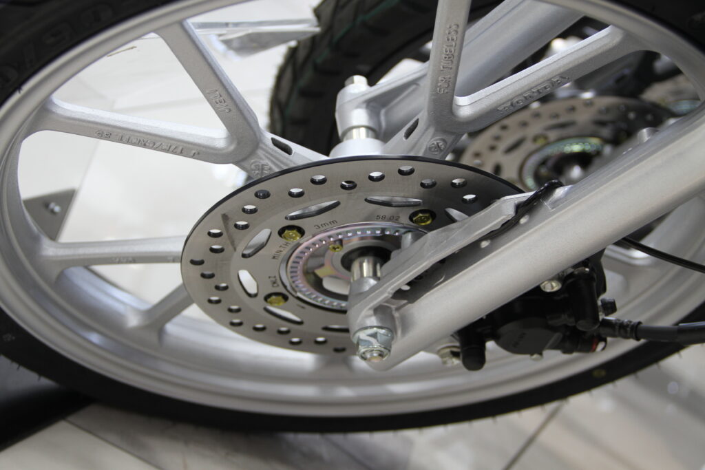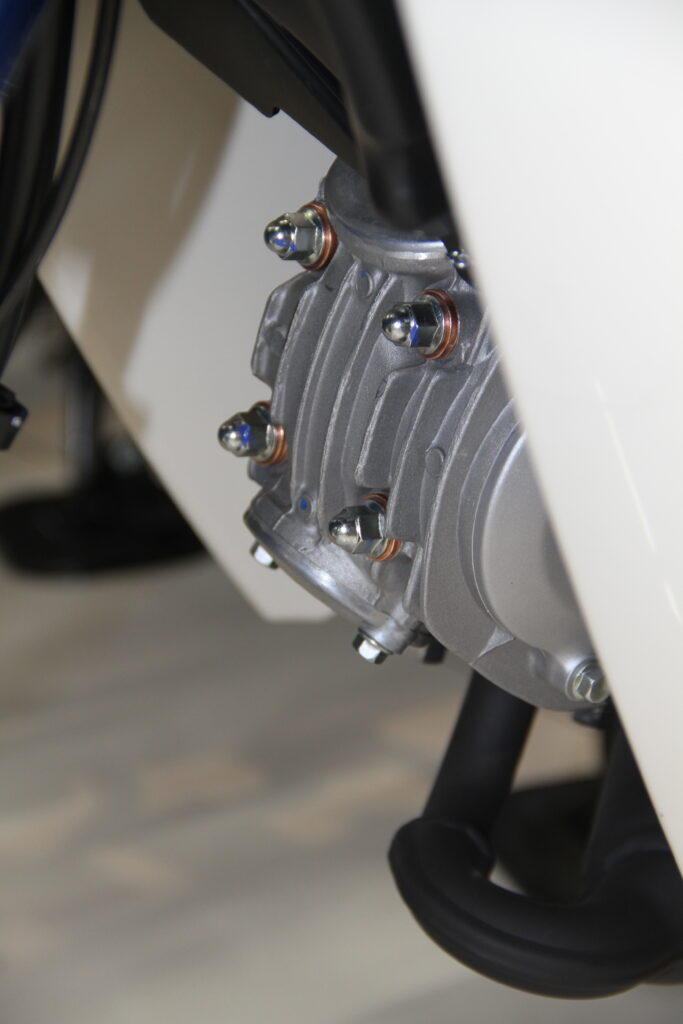 レッグシールドの白とのコントラストが爽やかで、街中でもツーリング先でも目を引きそうです。