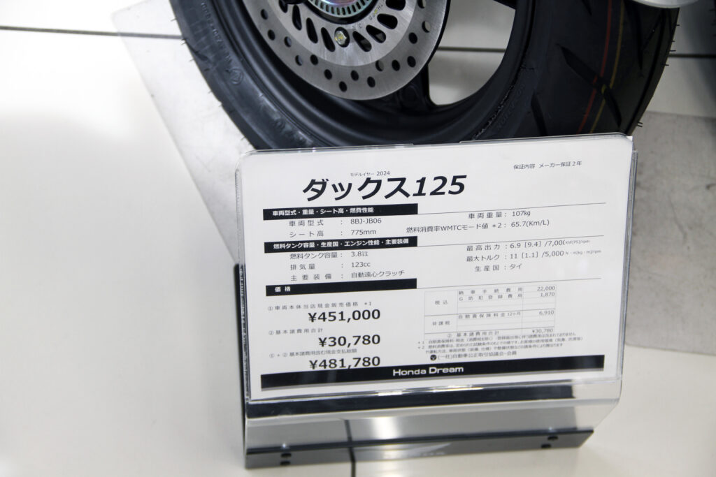 スーパーカブ50Hello Kitty エディションと並んで目を引く、Dax125の赤。