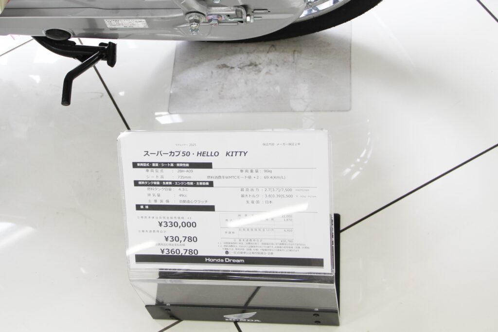 店頭の一番目に付く場所にあったのが、スーパーカブ50Hello Kitty エディション。